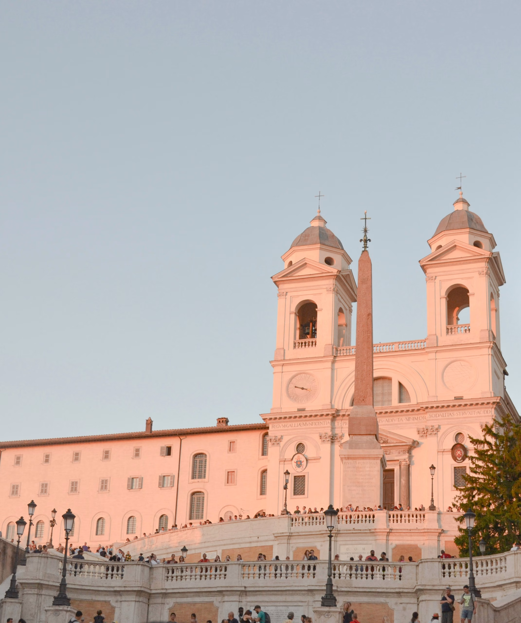 The square was redesigned in the Baroque period to organize space on a monumental scale. At its center rises the ancient Egyptian obelisk, acting as a visual anchor around which the piazza is structured. As a result, the surrounding elements — churches, ramps and open perspectives — align into a balanced composition.